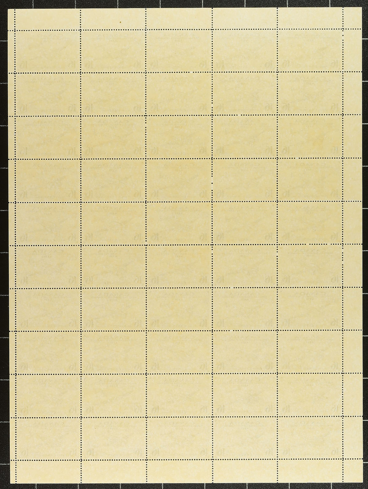 VF mint NH complete sheet of 50 of the 1942 issue 16c bright ultramarine "Trans-Canada airplane" Airmail Special Delivery issue. The sheet includes inscription blocks at the upper left and lower left corners. 2024 Unitrade =