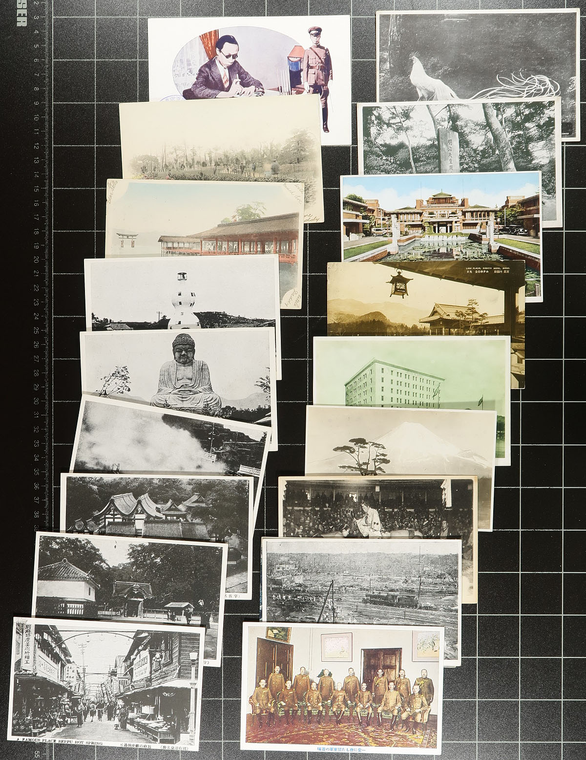 Japan. A collector's accumulation of 85 postcards, with a very nice mix of "classic" pre-1920 postcards (including hand-coloured), up to the 1950's era. Of particular note, are view of the Temples, Japanese ladies and town / landscape postcards. A very clean group. Estimate =