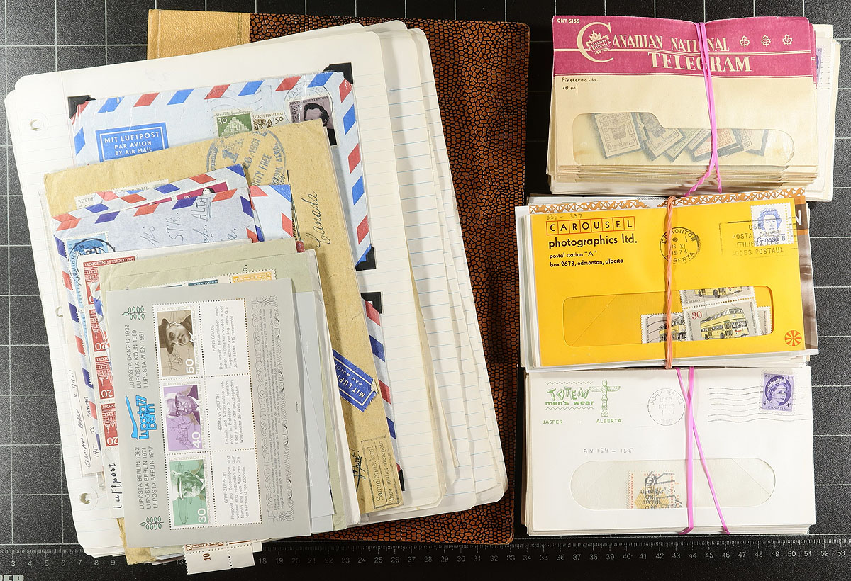 A mostly post-war German hoard from a substantial estate. Three sections here. 1. A group of Germany-Berlin used issues up to the early 1980's, sorted in #8 envelopes (with a few having Eastern, post-war "local post" issues). Secondly are about 50 covers from Germany and DDR (some on pages, some loose), mostly used to Canada which might help for someone doing a rate study. The last part is a spineless 16-page stockbook with an assortment of Germany and DDR stamps (and a couple of mint DDR booklet panes) 1930-1975. Offered as received. With lots of value here for someone looking to sit down and sort this out. Estimate =