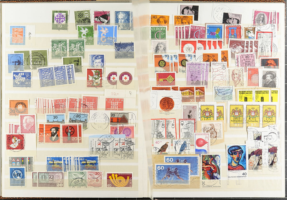 A mostly post-war German hoard from a substantial estate. Three sections here. 1. A group of Germany-Berlin used issues up to the early 1980's, sorted in #8 envelopes (with a few having Eastern, post-war "local post" issues). Secondly are about 50 covers from Germany and DDR (some on pages, some loose), mostly used to Canada which might help for someone doing a rate study. The last part is a spineless 16-page stockbook with an assortment of Germany and DDR stamps (and a couple of mint DDR booklet panes) 1930-1975. Offered as received. With lots of value here for someone looking to sit down and sort this out. Estimate =