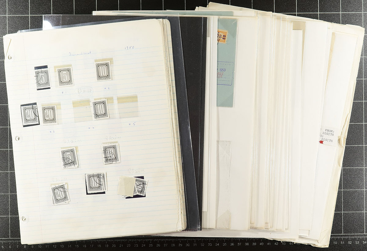 Part exhibit, part specialized collection, part accumulation of the 1953 design definitives and the 1950’s officials, plus a bit of later official stamps which are listed in Michel, but not Scott. A mix of mint and used, with different Michel listings (including differing paper types, perforations, watermarks). With singles, sets, and some of the later Michel-listed officials include covers. Finishes with a couple pieces of original correspondence between the collector and East German agencies (in German). Appears to have been untouched for 60 years! Perfect to expand your DDR collection. Housed in a one-inch binder. Estimate =