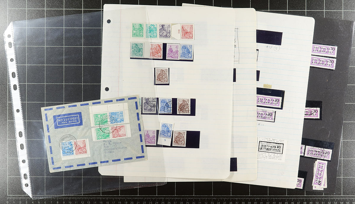 Part exhibit, part specialized collection, part accumulation of the 1953 design definitives and the 1950’s officials, plus a bit of later official stamps which are listed in Michel, but not Scott. A mix of mint and used, with different Michel listings (including differing paper types, perforations, watermarks). With singles, sets, and some of the later Michel-listed officials include covers. Finishes with a couple pieces of original correspondence between the collector and East German agencies (in German). Appears to have been untouched for 60 years! Perfect to expand your DDR collection. Housed in a one-inch binder. Estimate =