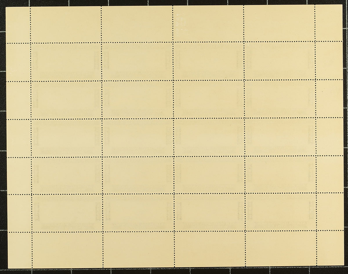 Wayzata Airmail. Archivally fresh and VF mint Never Hinged complete sheet of 20 of the famous Wayzata airmail. The so-called "Wayzata Airmail" $1.00 stamp was issued in August 1932 to fund an historic flight from Wayzata, Minnesota to England. The flight never took place. This issue is mentioned and priced in a footnote in Scott. Seldom offered in complete sheets. Priced as 20 singles, but certainly worth more as a sheet. 2025 Scott US$700.00 =