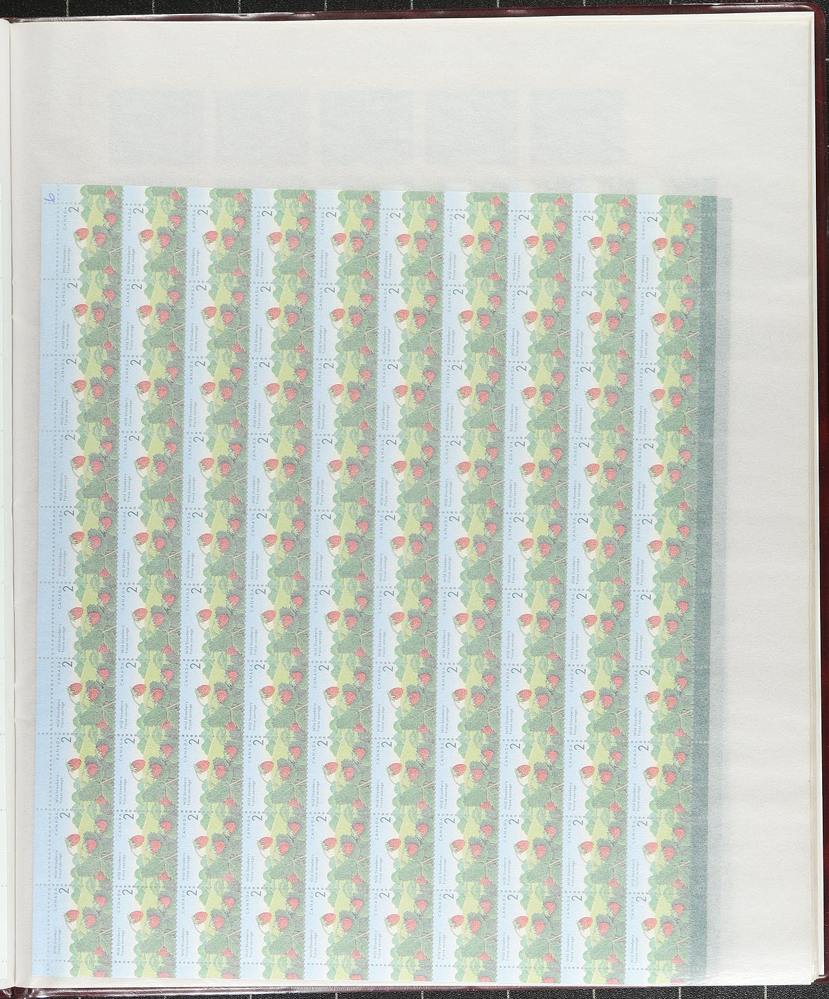 Mint Sheet Holding. An eclectic mix of 27 complete sheets (plus several incomplete sheets) from the 1950's to 1990's arranged within a deluxe padded "Modern Large Mint Sheet File". Several tougher to find sheets including 45c "Flag over Building" and "Edible Berries" definitives, as well as 1950's Prime Ministers and 1980's ART Canada. A diverse and useful mix of material here! Conservatively valued for the total usable face value only. Total face value =