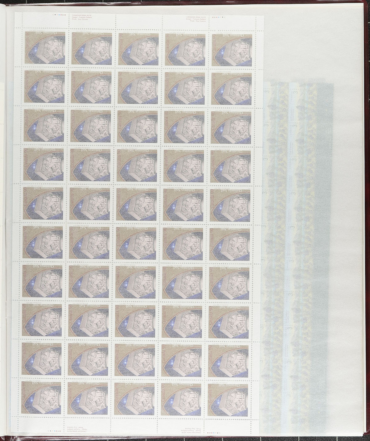 Mint Sheet Holding. An eclectic mix of 27 complete sheets (plus several incomplete sheets) from the 1950's to 1990's arranged within a deluxe padded "Modern Large Mint Sheet File". Several tougher to find sheets including 45c "Flag over Building" and "Edible Berries" definitives, as well as 1950's Prime Ministers and 1980's ART Canada. A diverse and useful mix of material here! Conservatively valued for the total usable face value only. Total face value =
