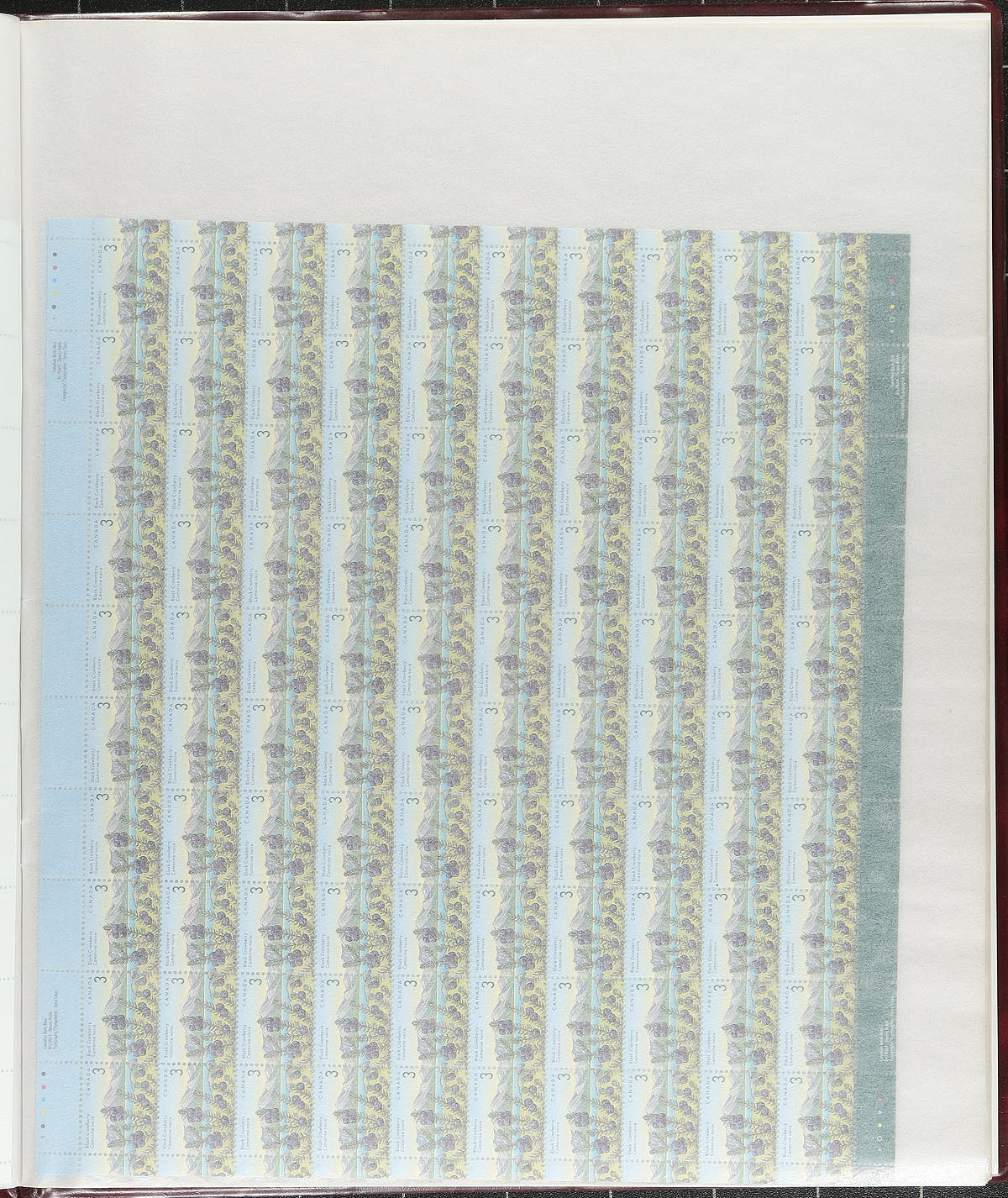 Mint Sheet Holding. An eclectic mix of 27 complete sheets (plus several incomplete sheets) from the 1950's to 1990's arranged within a deluxe padded "Modern Large Mint Sheet File". Several tougher to find sheets including 45c "Flag over Building" and "Edible Berries" definitives, as well as 1950's Prime Ministers and 1980's ART Canada. A diverse and useful mix of material here! Conservatively valued for the total usable face value only. Total face value =
