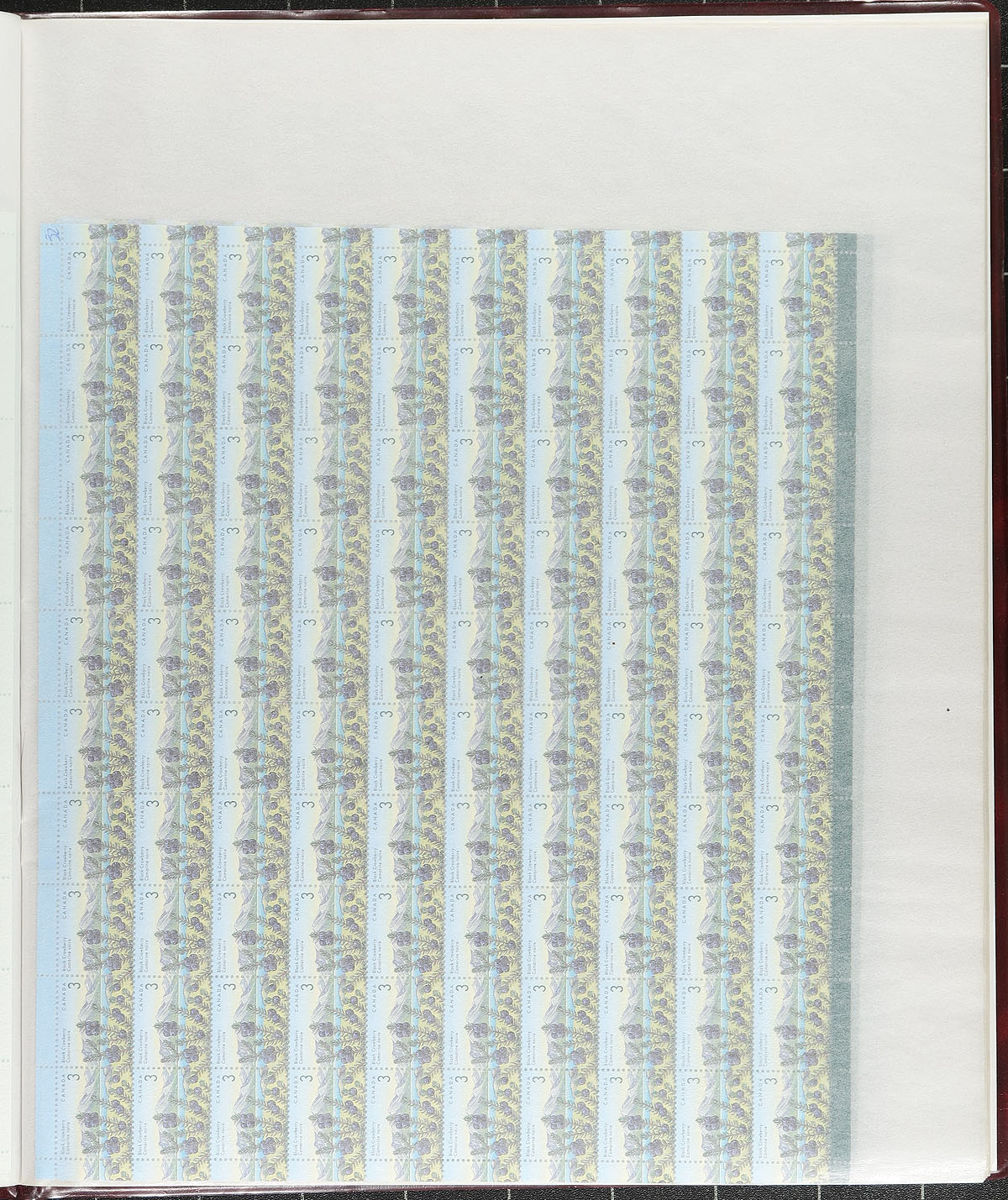 Mint Sheet Holding. An eclectic mix of 27 complete sheets (plus several incomplete sheets) from the 1950's to 1990's arranged within a deluxe padded "Modern Large Mint Sheet File". Several tougher to find sheets including 45c "Flag over Building" and "Edible Berries" definitives, as well as 1950's Prime Ministers and 1980's ART Canada. A diverse and useful mix of material here! Conservatively valued for the total usable face value only. Total face value =