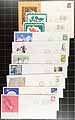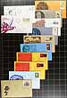 First Day Covers. Holding of 63x "Pharmaceutical" First Day Cover holding 1957-1973 (but primarily from the late 1960's / early 1970's), with private cachets produced or specially produced for either Schering or Elliot-Marion (EM). Condition is fair overall, with almost all still having the original info "stuffer" inside. Estimate =