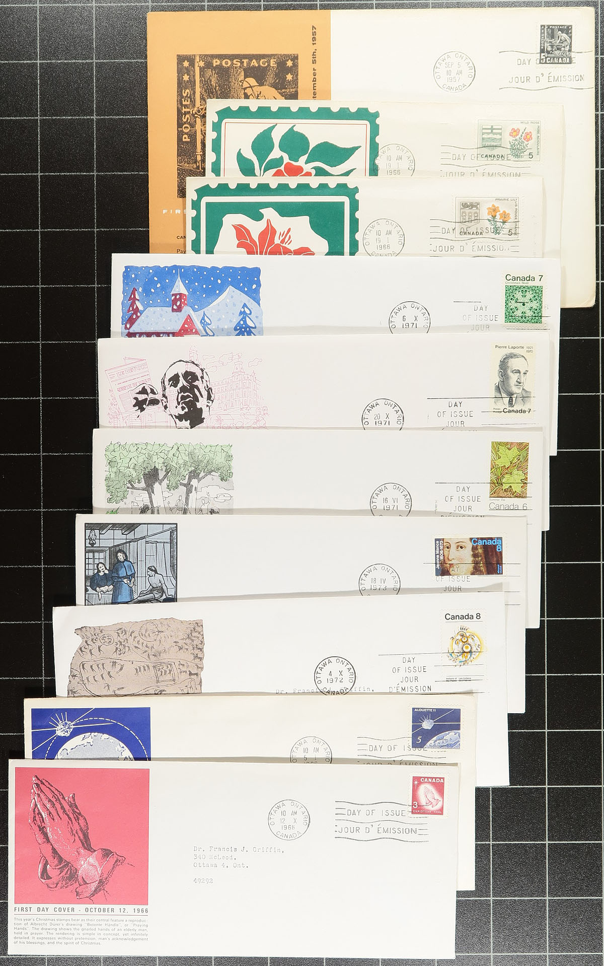 First Day Covers. Holding of 63x "Pharmaceutical" First Day Cover holding 1957-1973 (but primarily from the late 1960's / early 1970's), with private cachets produced or specially produced for either Schering or Elliot-Marion (EM). Condition is fair overall, with almost all still having the original info "stuffer" inside. Estimate =