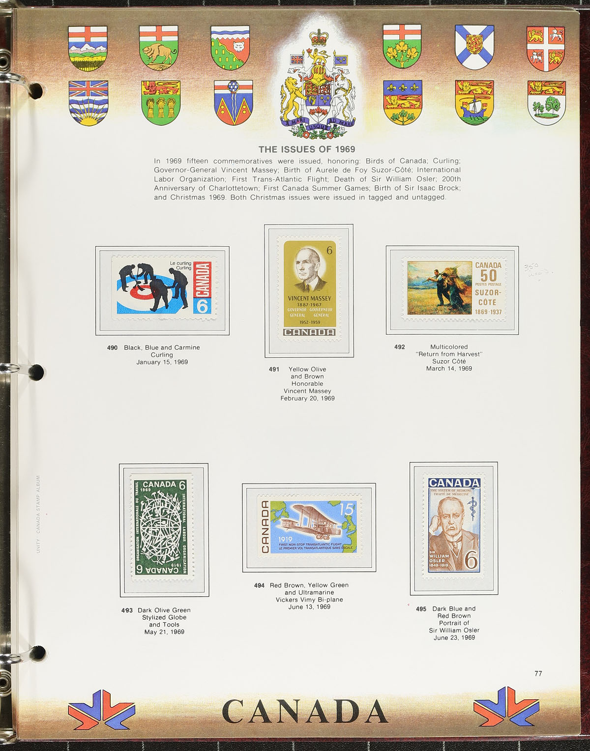 Unity Stamp Albums Collection. A duo of padded binder, illustrated pages Unity albums, with pages for 1851-1993 plus "Back of the Book" A bit sparsely filled in the front, but did notice a few Small Queens / Map Stamps followed by a smattering of used before transitioning to mostly mint mounted on the pages. Conservatively valued for the usable postage / face value alone, but take into consideration there is a good amount of used, plus two better albums (which would likely retail $150.00 alone). Total face value =