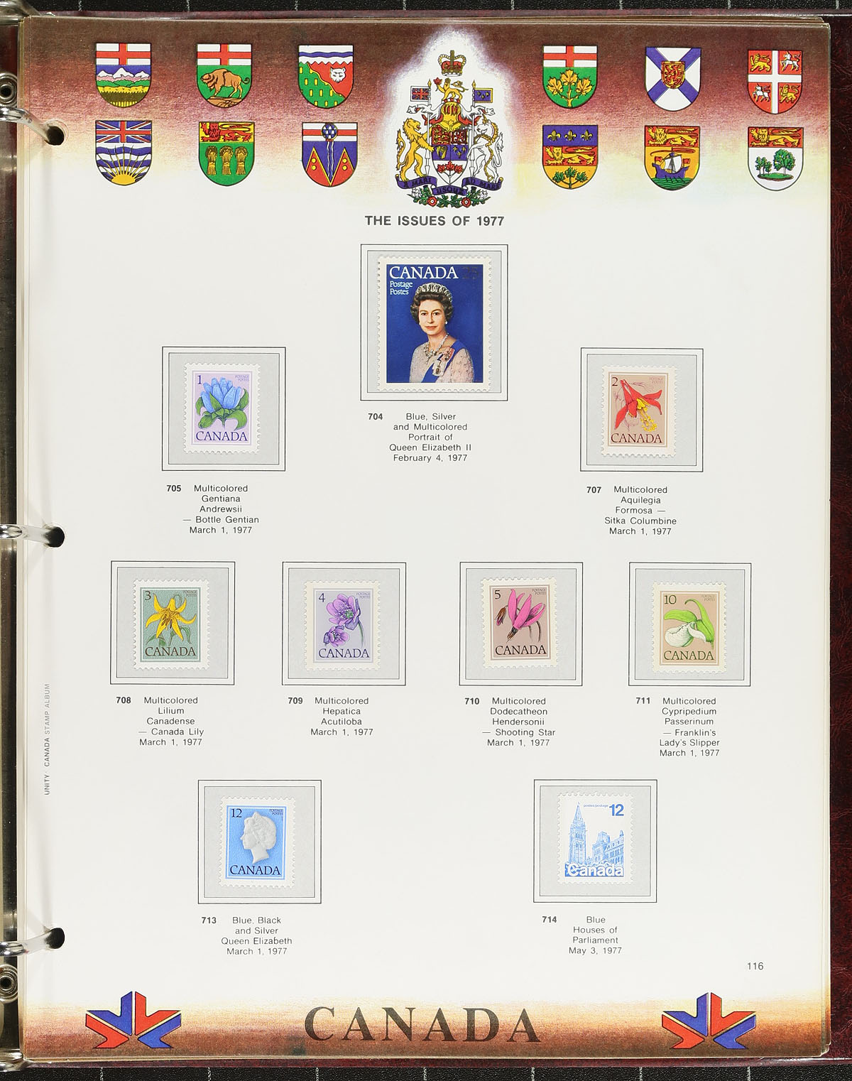 Unity Stamp Albums Collection. A duo of padded binder, illustrated pages Unity albums, with pages for 1851-1993 plus "Back of the Book" A bit sparsely filled in the front, but did notice a few Small Queens / Map Stamps followed by a smattering of used before transitioning to mostly mint mounted on the pages. Conservatively valued for the usable postage / face value alone, but take into consideration there is a good amount of used, plus two better albums (which would likely retail $150.00 alone). Total face value =