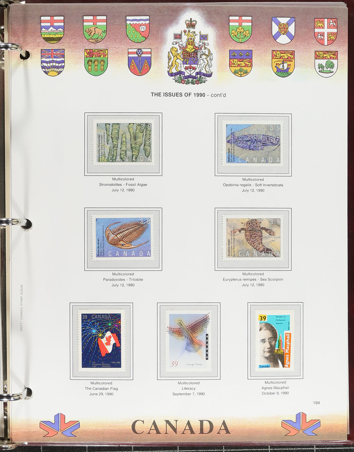 Unity Stamp Albums Collection. A duo of padded binder, illustrated pages Unity albums, with pages for 1851-1993 plus "Back of the Book" A bit sparsely filled in the front, but did notice a few Small Queens / Map Stamps followed by a smattering of used before transitioning to mostly mint mounted on the pages. Conservatively valued for the usable postage / face value alone, but take into consideration there is a good amount of used, plus two better albums (which would likely retail $150.00 alone). Total face value =