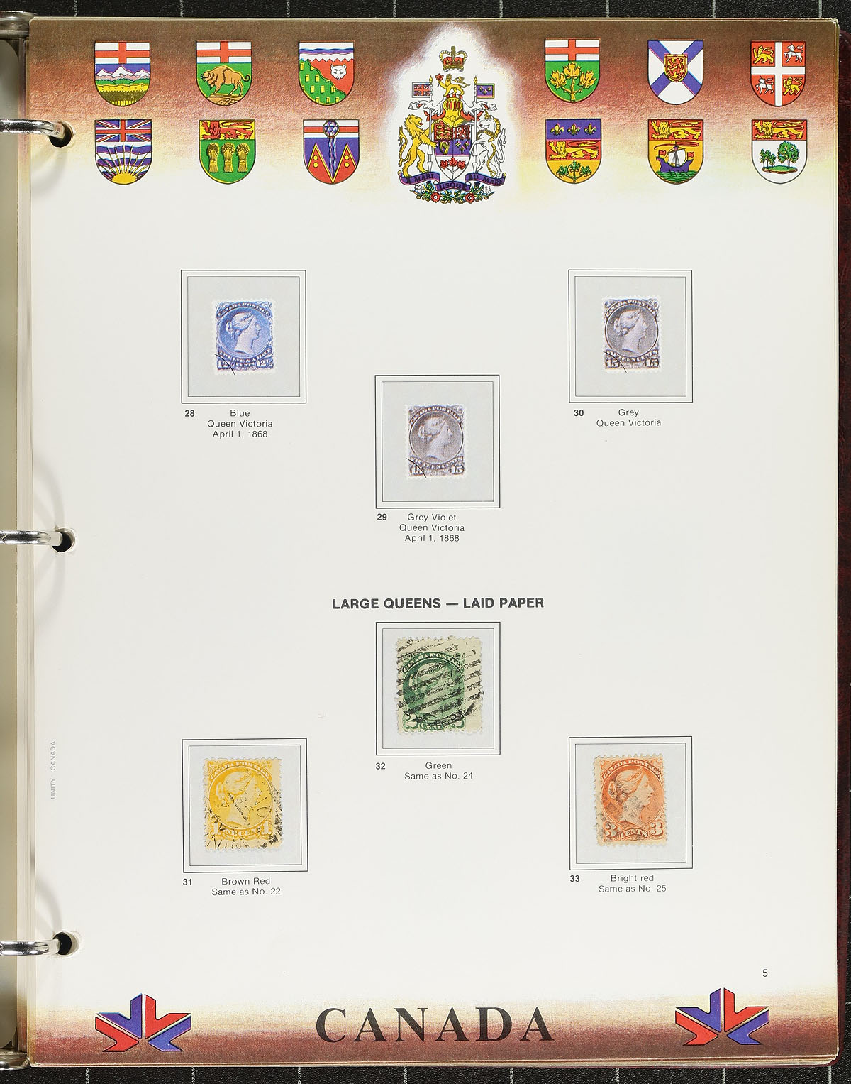 Unity Stamp Albums Collection. A duo of padded binder, illustrated pages Unity albums, with pages for 1851-1993 plus "Back of the Book" A bit sparsely filled in the front, but did notice a few Small Queens / Map Stamps followed by a smattering of used before transitioning to mostly mint mounted on the pages. Conservatively valued for the usable postage / face value alone, but take into consideration there is a good amount of used, plus two better albums (which would likely retail $150.00 alone). Total face value =