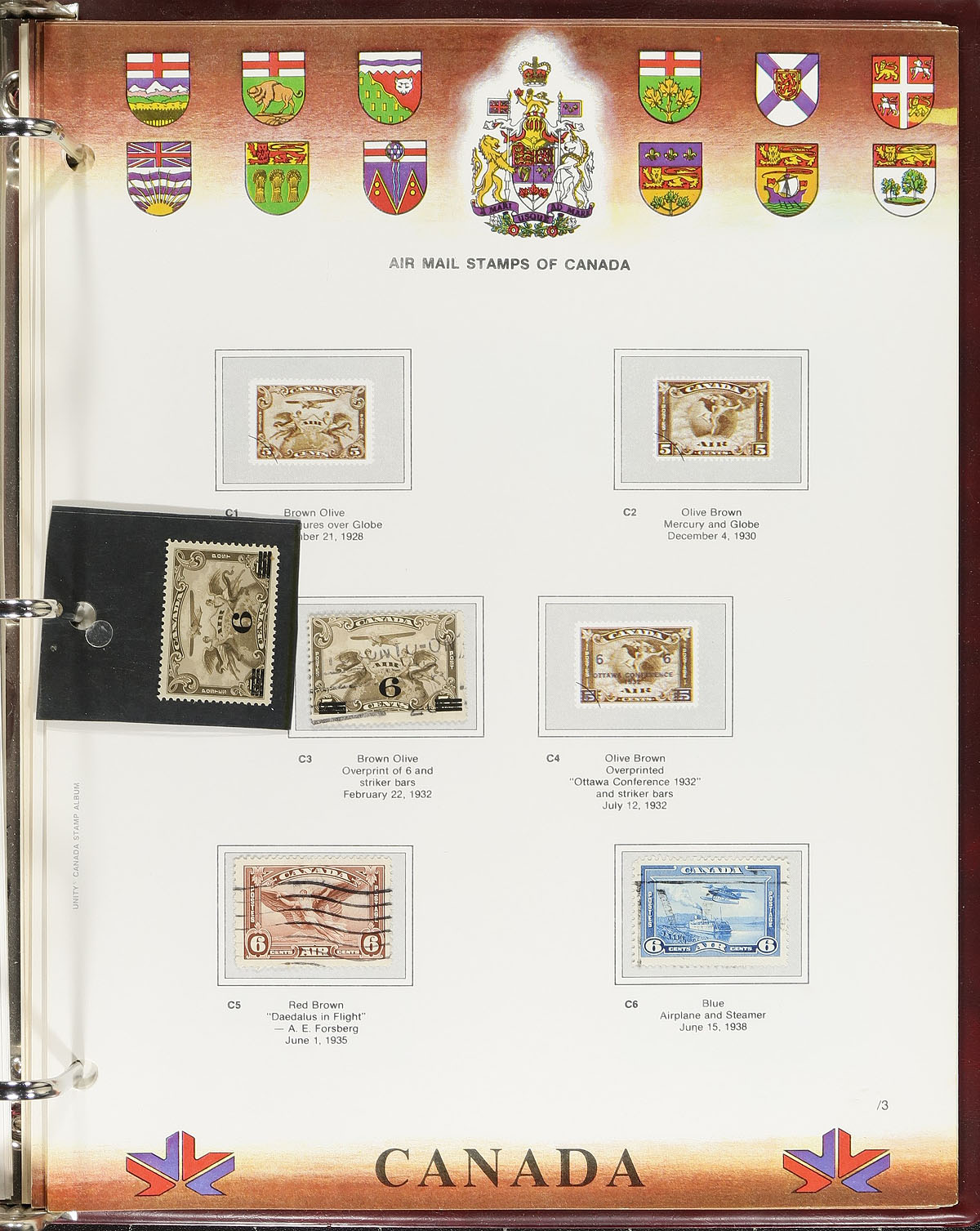 Unity Stamp Albums Collection. A duo of padded binder, illustrated pages Unity albums, with pages for 1851-1993 plus "Back of the Book" A bit sparsely filled in the front, but did notice a few Small Queens / Map Stamps followed by a smattering of used before transitioning to mostly mint mounted on the pages. Conservatively valued for the usable postage / face value alone, but take into consideration there is a good amount of used, plus two better albums (which would likely retail $150.00 alone). Total face value =