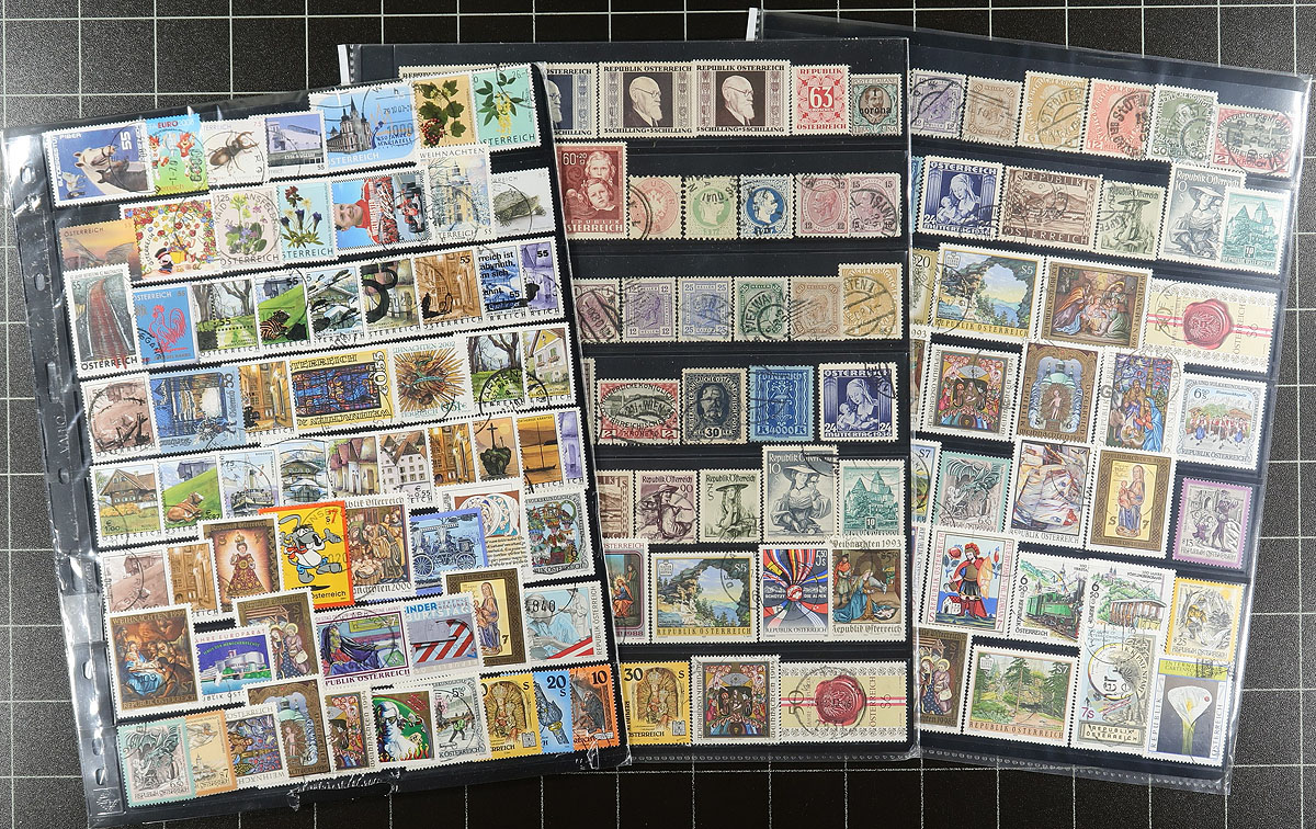 Nice lot of used Austria, 1850's-2008, containing over 1,000 stamps in over 20 stock or album pages. This well organized group generally ranges from Scott #3/2156, along with a few used souvenir sheets, and several back of the book issues, including a decent selection of postage dues (noting a few mint issues included). Postmark interest include cds and other types, including some "socked on the nose" town cancels. A nice lot for the Austria or worldwide collector. Owner's older 2011 Scott US$1,151.00 =