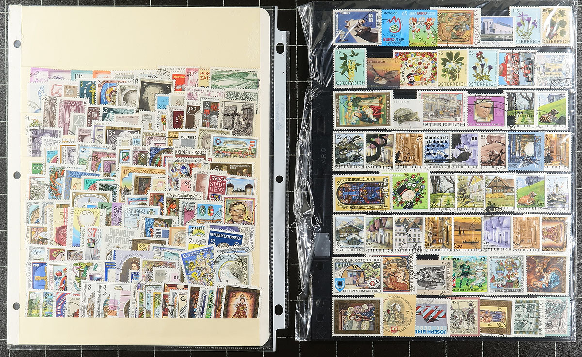 Nice lot of used Austria, 1850's-2008, containing over 1,000 stamps in over 20 stock or album pages. This well organized group generally ranges from Scott #3/2156, along with a few used souvenir sheets, and several back of the book issues, including a decent selection of postage dues (noting a few mint issues included). Postmark interest include cds and other types, including some "socked on the nose" town cancels. A nice lot for the Austria or worldwide collector. Owner's older 2011 Scott US$1,151.00 =