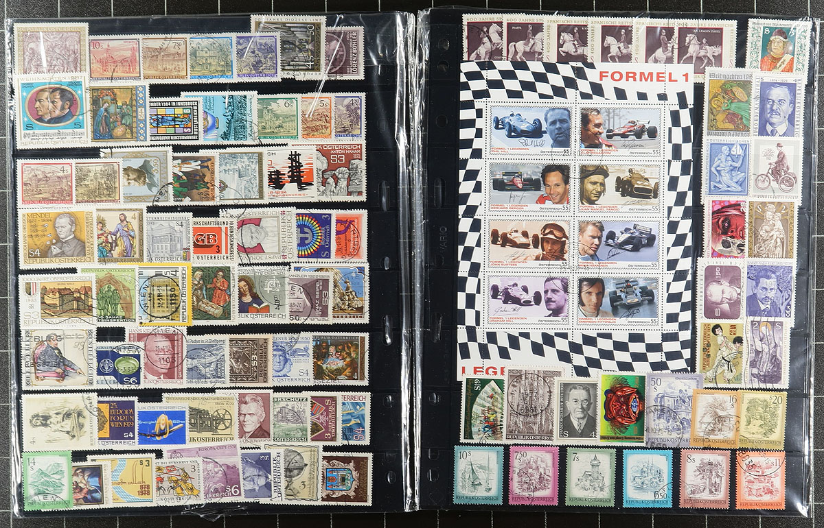 Nice lot of used Austria, 1850's-2008, containing over 1,000 stamps in over 20 stock or album pages. This well organized group generally ranges from Scott #3/2156, along with a few used souvenir sheets, and several back of the book issues, including a decent selection of postage dues (noting a few mint issues included). Postmark interest include cds and other types, including some "socked on the nose" town cancels. A nice lot for the Austria or worldwide collector. Owner's older 2011 Scott US$1,151.00 =