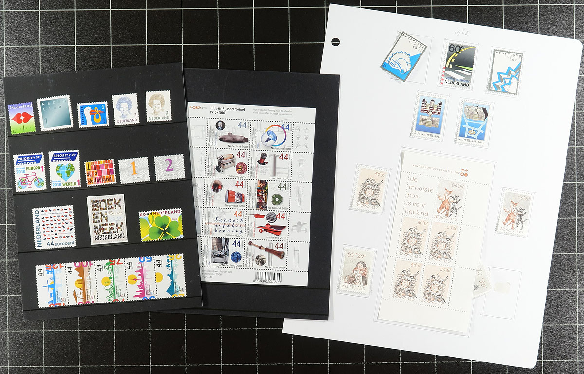 Nice group of mint Netherlands, 1970's-2011, with a few hundred stamps on a handful of stock pages. This group has a little bit of everything including singles, sets, booklet and booklet panes, and a few sheetlets, along with semi-postals, noting a few items cataloguing in the $5 to $10 range. Modern face value alone is roughly 180 Euros. A nice little lot for all collectors. Estimate =
