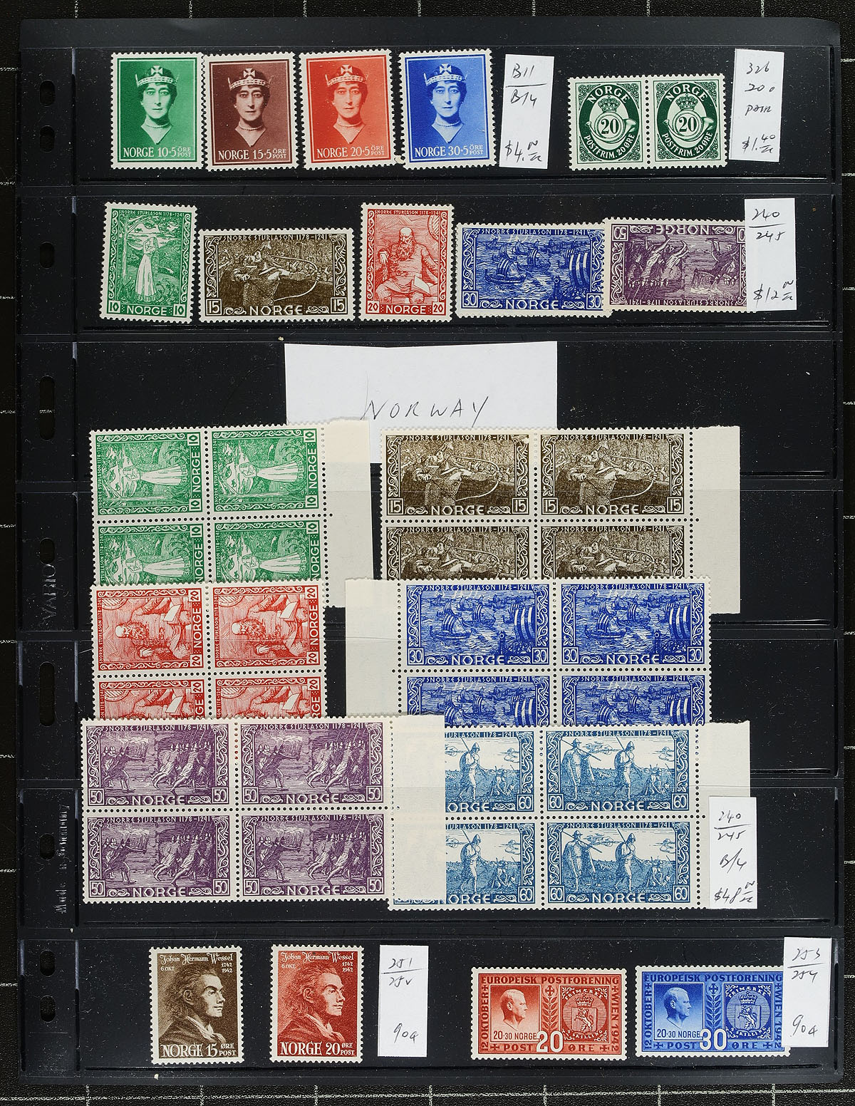 Lovely group of mint and used Norway, 1870's-2014, containing roughly 1,500 stamps on over 20 album and stock pages. The lot is well organized generally ranging from Scott #27/1723, including mint singles and a few blocks from the 1940's, noting a few items cataloguing in the $10 and up range. Postmark interest includes cds, and other types, including a few "socked on the nose" town postmarks. A nice lot for all collectors. Owner's older 2014 Scott US$1,065.00 =
