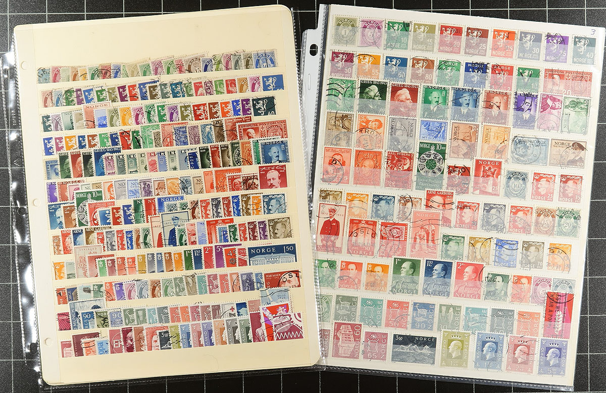 Lovely group of mint and used Norway, 1870's-2014, containing roughly 1,500 stamps on over 20 album and stock pages. The lot is well organized generally ranging from Scott #27/1723, including mint singles and a few blocks from the 1940's, noting a few items cataloguing in the $10 and up range. Postmark interest includes cds, and other types, including a few "socked on the nose" town postmarks. A nice lot for all collectors. Owner's older 2014 Scott US$1,065.00 =