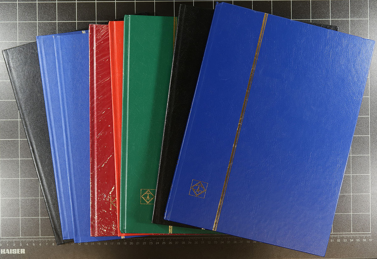 VF used group of 8x Lighthouse brand 16-page (white pages) stockbooks, all lightly used, with one still being brand-new in the original plastic wrap. The "as new" retail cost on these books would be near $200.00. Estimate =