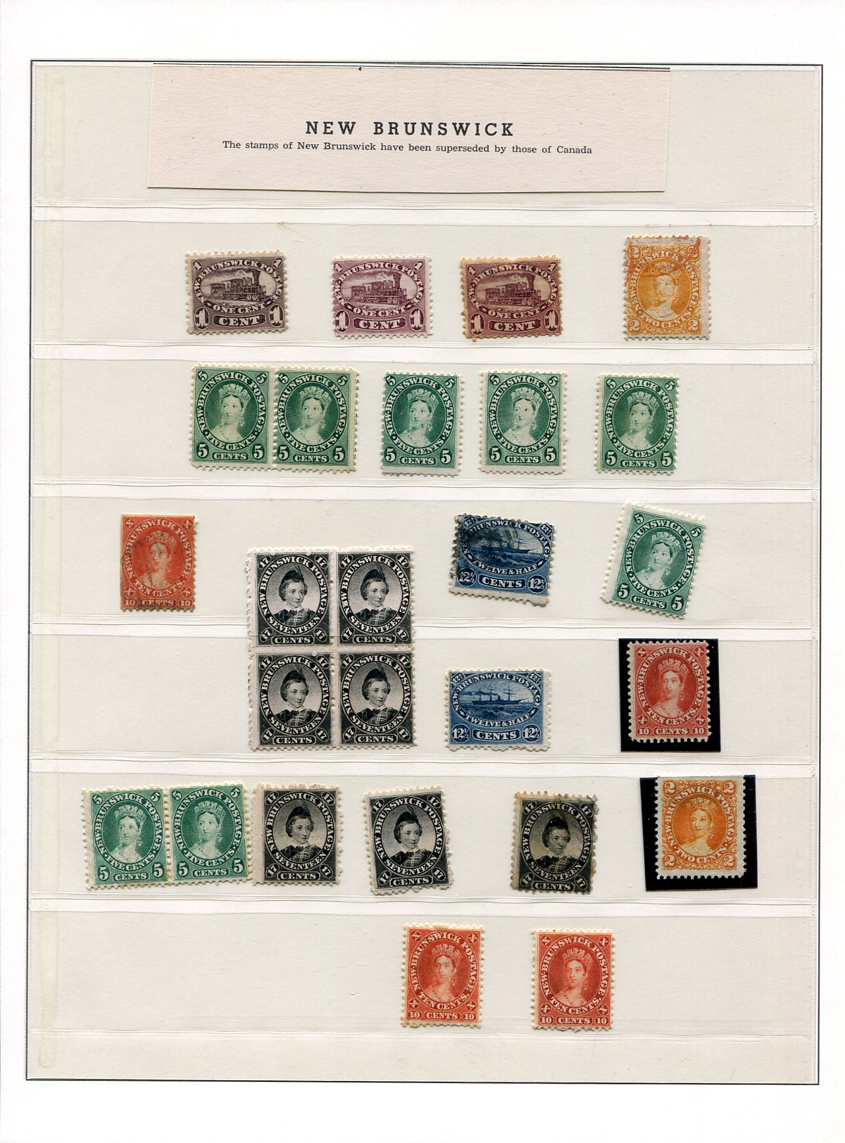 A collector's assembly of New Brunswick, Nova Scotia and Prince Edward Island arranged on cut-down Lighthouse hingeless pages. A valuable holding, which includes mint and used, with singles, multiples and even a NS proof! Generally sound, but expect the mint to be hinged (and a few no-gum) and the odd small fault. Of particular note is a sound 4-margin example of the imperforate NS #2. A total of 54 stamps and 1 proof. Estimate =