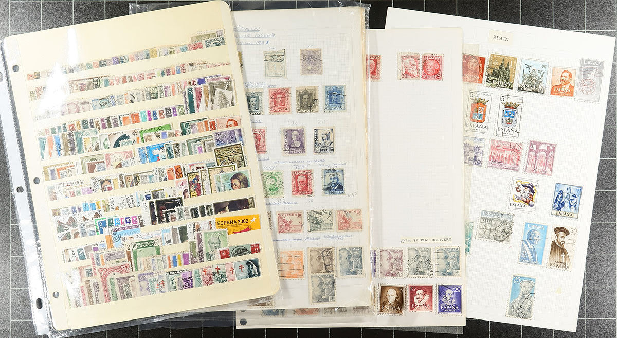 Europe. Nice collection / accumulation of primarily used European stamps, containing a few thousand stamps in over 30 stock or album pages. A spot check indicated a handful of countries represented with better from Spain and Turkey, along with material from Holland, Norway, Finland, Albania, Russia, and a few others. The majority of stamps appear to range from the 1920's onwards, but did spot a few earlier issues. Owner's older catalogue value for some pages total $50 to $75 each, leaving better finds for the dedicated collector. Estimate =
