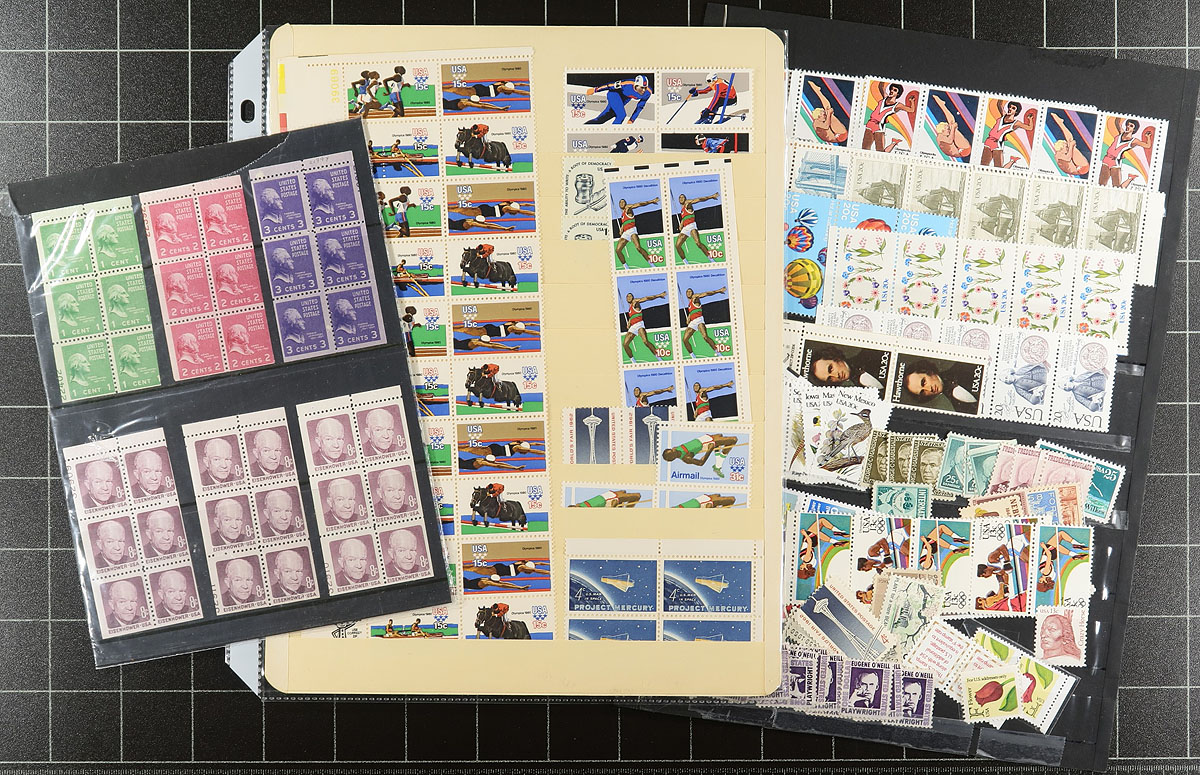 Collection / accumulation of primarily never hinged United States, 1920's-1990's, containing many hundreds of stamps, along with a few booklets and booklet panes, in over 35 album or stock pages. A spot check of material indicated mostly singles and a few sets, generally ranging from the 1930's to the 1970's, with catalogue values ranging from $5 to $10 and up for some material. Face value alone is US$172.00. A nice clean lot for collectors and postage users. Overall fine to very fine. Estimate =