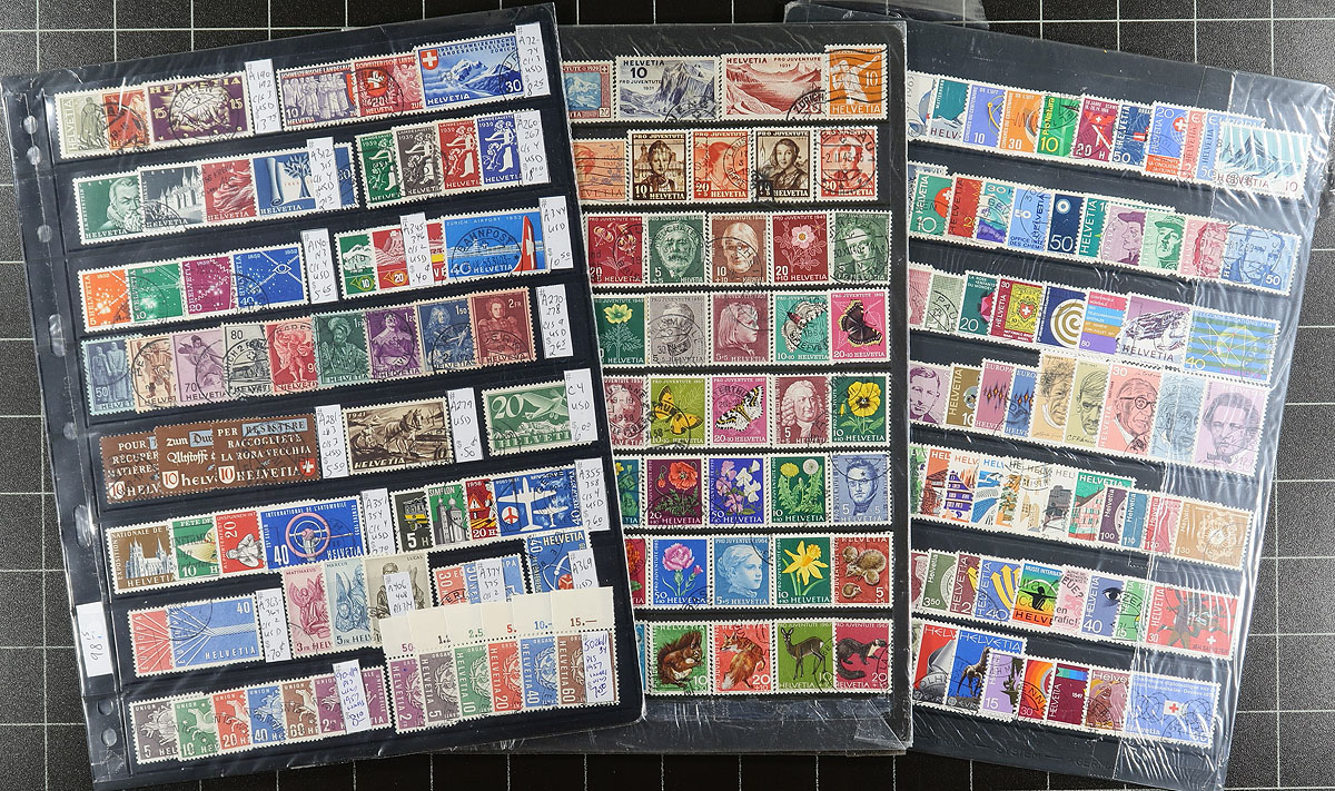 Collection / accumulation of used Switzerland, 1855-2002, containing roughly 1,700 stamps in roughly 20 stock pages. The lot ranges from Scott #29/1276, including back of the book issues, including #s 29, 37, 70, 86a, 96, 146, 201-203, and several other issues cataloguing $10 and up. Lots of potential finds for the dedicated collector. Postmark interest with many "socked on the nose" town cancels. A few faults on a few of the early issues, overall fine to very fine. Owner's older 2015 Scott US$1,778.00 =