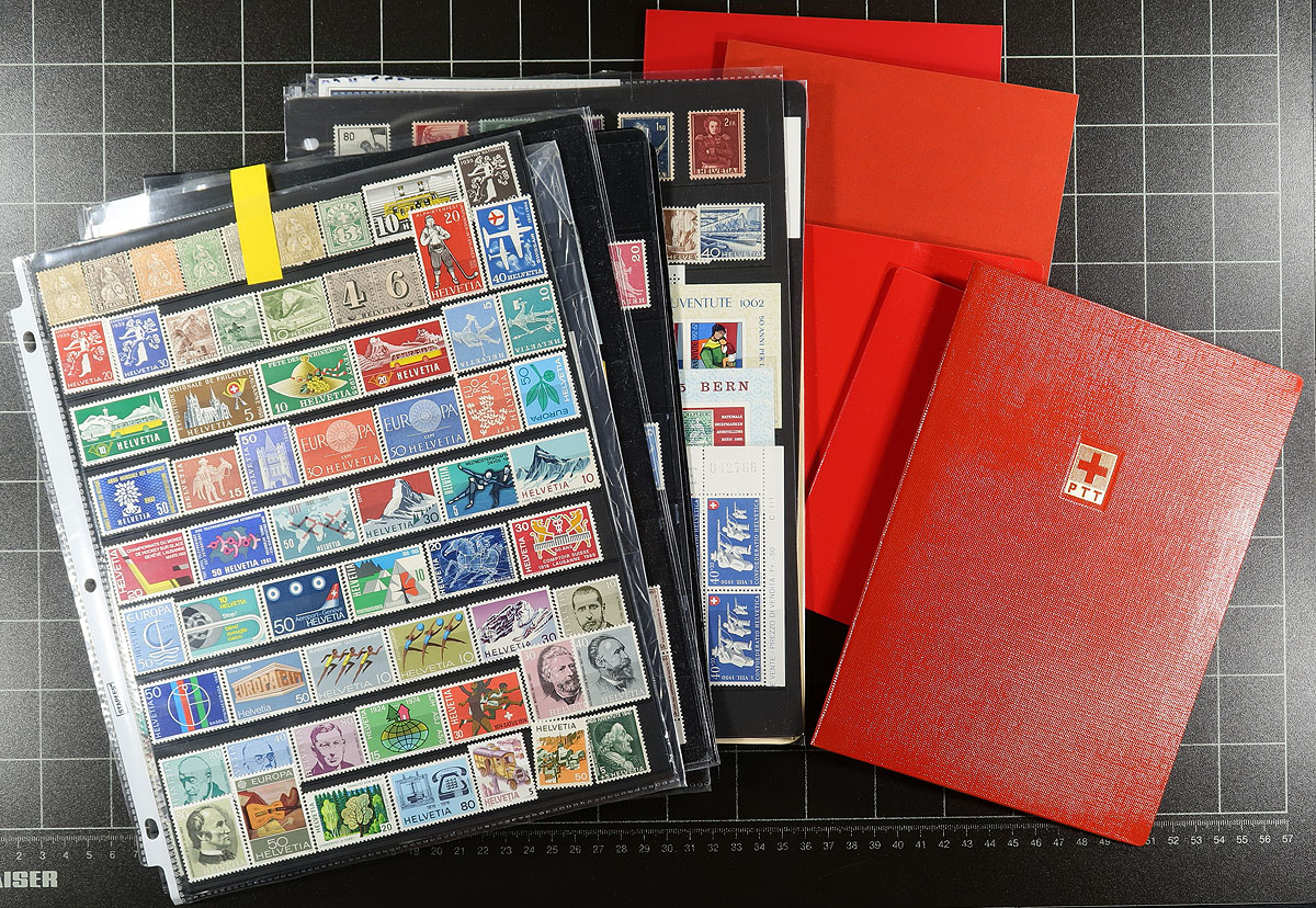 Nice group of primarily never hinged Switzerland, 1880's-2005, containing roughly 650 stamps in a handful of stock pages. The lot contains a wide variety of items, generally ranging from Scott #60/1193, including several semi-postal sets, some souvenir sheets, coils, plate blocks, a few year sets, and more. We note a few items cataloguing in the $10 to $20 range. A nice clean lot for all collectors. Owner's older Scott (unknown year) US$1,076.00 =