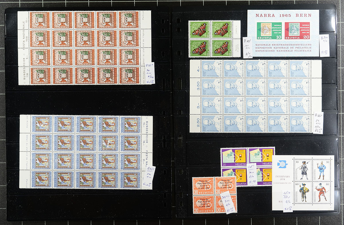 Nice group of primarily never hinged Switzerland, 1880's-2005, containing roughly 650 stamps in a handful of stock pages. The lot contains a wide variety of items, generally ranging from Scott #60/1193, including several semi-postal sets, some souvenir sheets, coils, plate blocks, a few year sets, and more. We note a few items cataloguing in the $10 to $20 range. A nice clean lot for all collectors. Owner's older Scott (unknown year) US$1,076.00 =