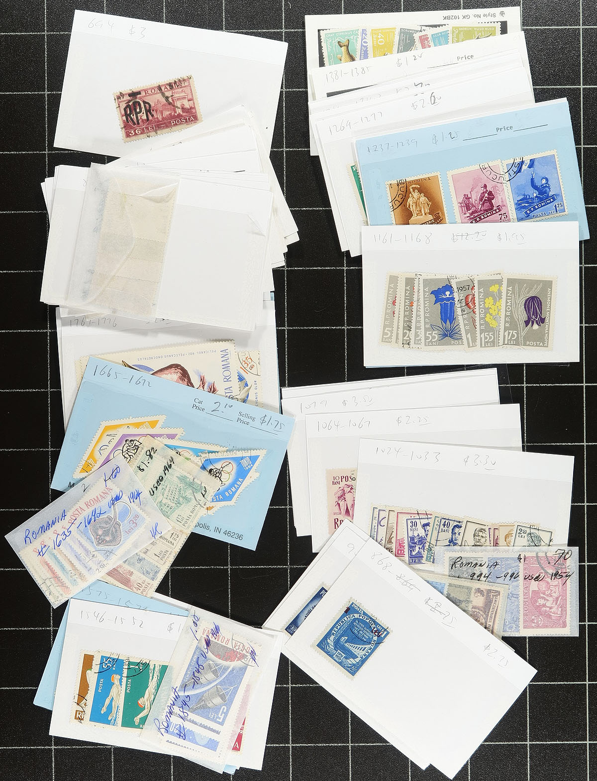 Accumulation of mint and used Romania, 1872-1996, containing roughly 1,300 stamps in a variety of formats including several 102 cards, and some stock and album pages. The lot generally ranges from Scott #85/2083, noting singles and sets, with the majority of material ranging from the 1920's to the 1970's. We note several topical and thematic subjects within, and ideal for all collectors. Overall fine to very fine. Owner's older 2012 Scott US$838.00 =
