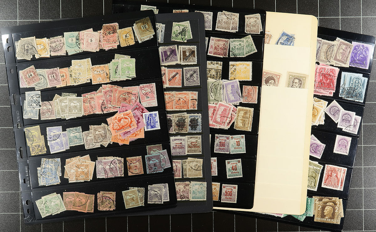 Collection of used Hungary, 1871-1970's, containing a few thousand stamps, neatly organized on over 50 Minkus album pages and some added material. The collection generally ranges from Scott #9/2022, with a few stamps and sets cataloguing $10 and up. Postmark interest includes cds and other town cancel types, including a few "socked on the nose" postmarks. A good collection that should be expanded. Estimate =