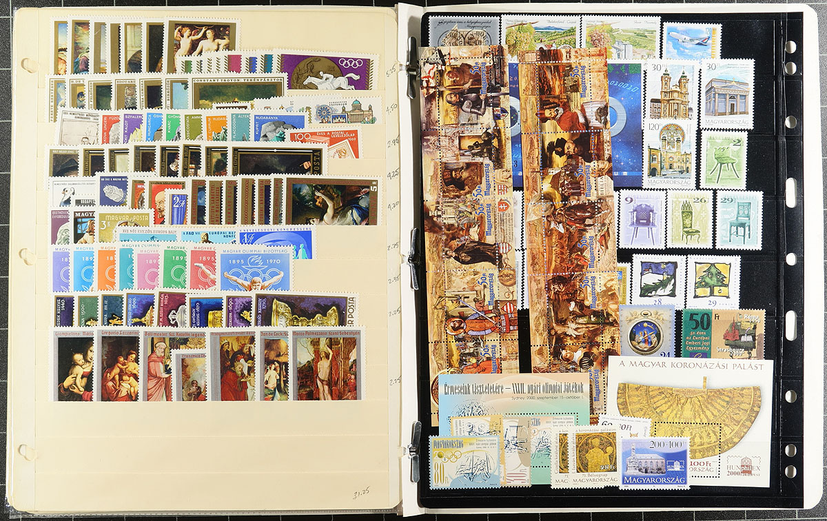 Nice collection of primarily never hinged Hungary, 1916-2000, containing probably over 1,000 stamps in roughly 20 stock or album pages. This neatly organized collection generally ranges from Scott #104/3702, along with selections of semi-postals, airmails, a few souvenir sheets, and booklet panes. A spot check indicated some sets cataloguing $10 and up. A nice clean collection, ideal for all collectors. Owner's older 2012 Scott US$1,299.00 =