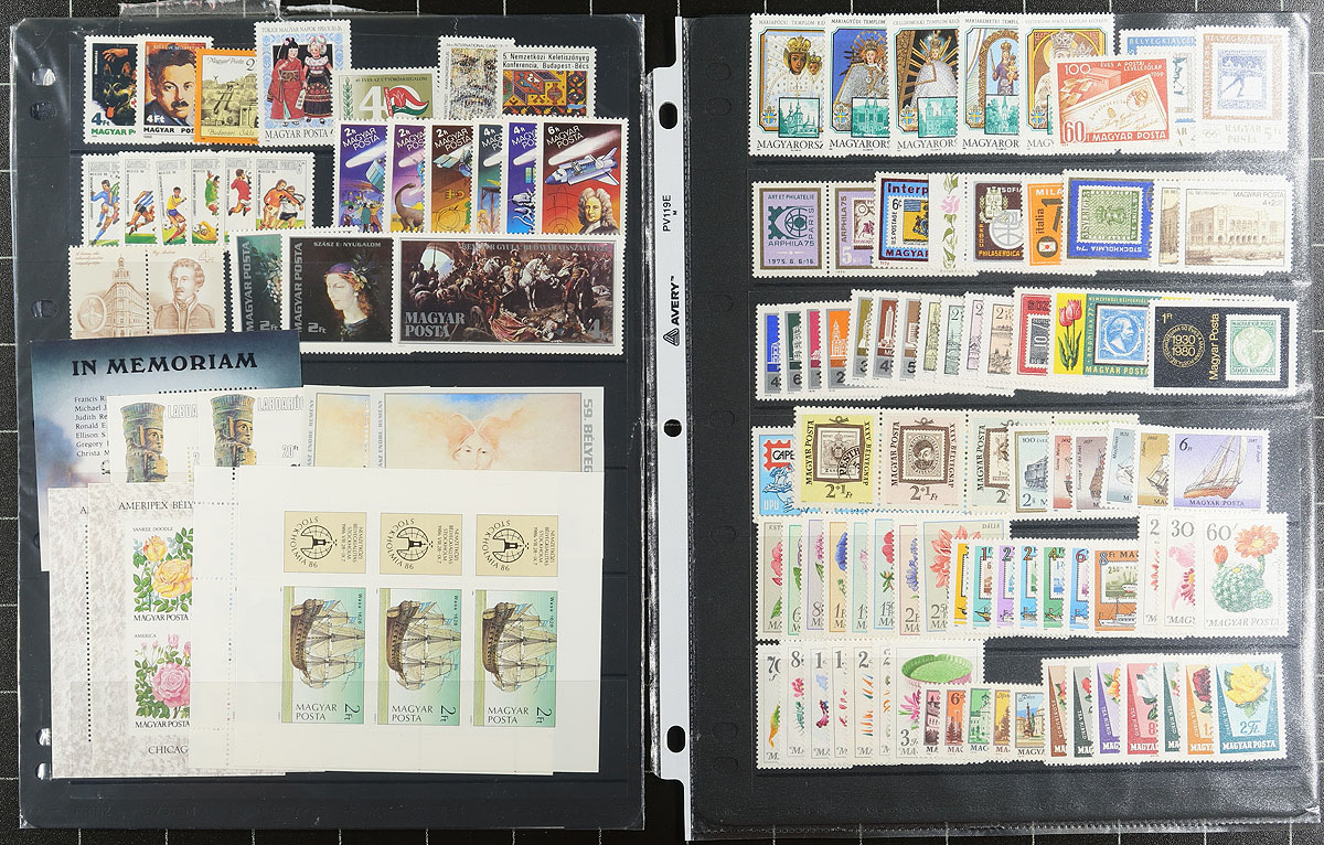 Nice collection of primarily never hinged Hungary, 1916-2000, containing probably over 1,000 stamps in roughly 20 stock or album pages. This neatly organized collection generally ranges from Scott #104/3702, along with selections of semi-postals, airmails, a few souvenir sheets, and booklet panes. A spot check indicated some sets cataloguing $10 and up. A nice clean collection, ideal for all collectors. Owner's older 2012 Scott US$1,299.00 =