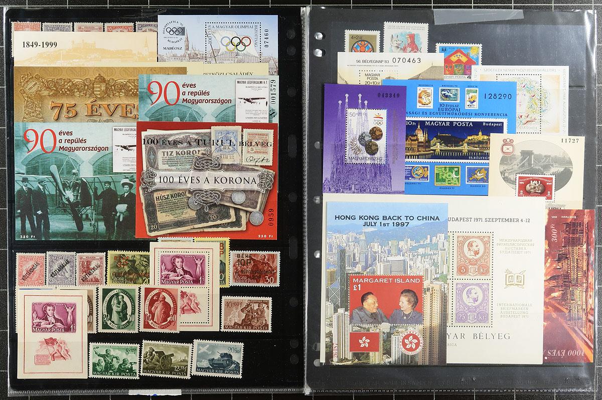 Nice collection of primarily never hinged Hungary, 1916-2000, containing probably over 1,000 stamps in roughly 20 stock or album pages. This neatly organized collection generally ranges from Scott #104/3702, along with selections of semi-postals, airmails, a few souvenir sheets, and booklet panes. A spot check indicated some sets cataloguing $10 and up. A nice clean collection, ideal for all collectors. Owner's older 2012 Scott US$1,299.00 =