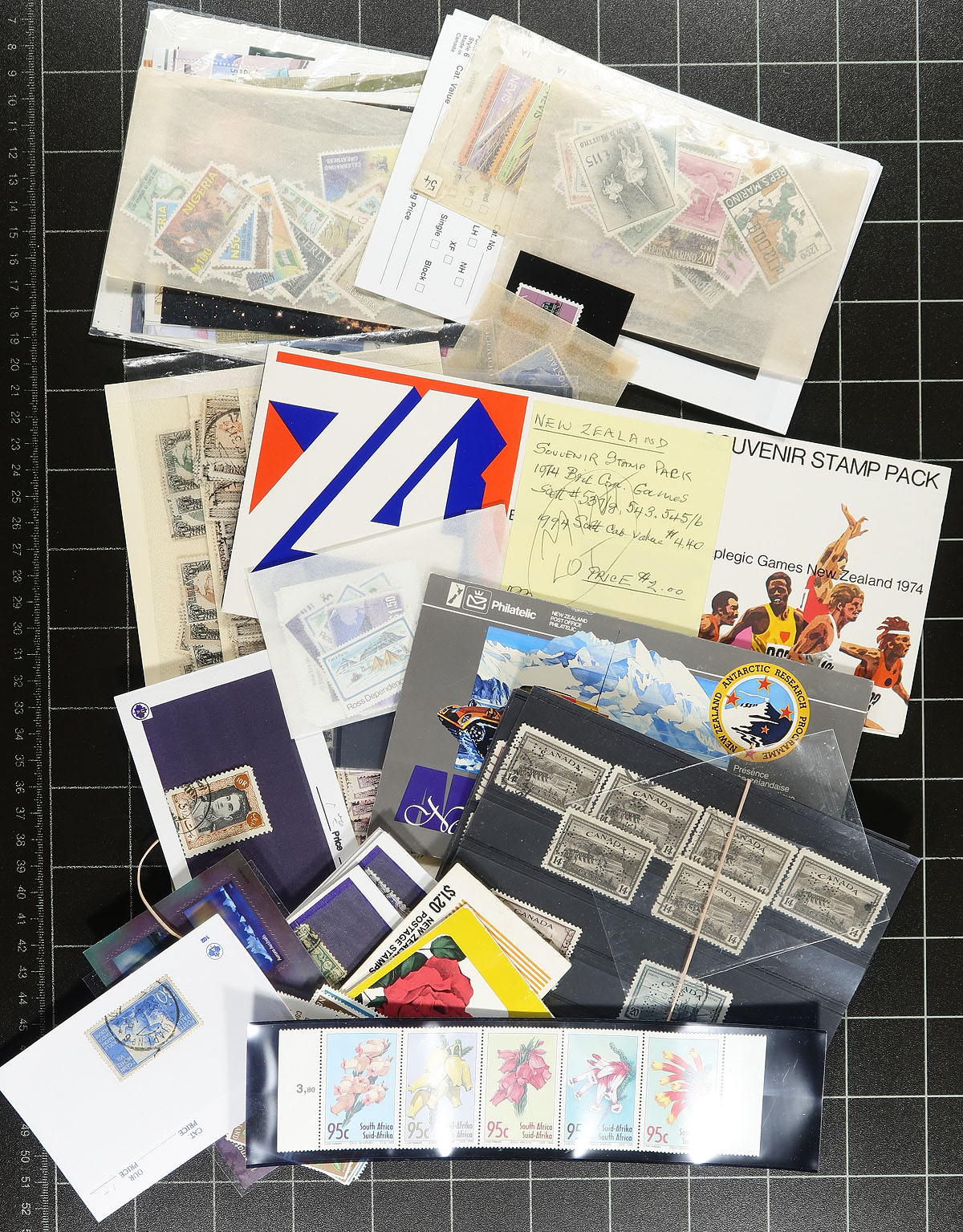 Treasure Box loaded with goodies as received from England, including much mint from tiny places like Marshall Islands; Germany excellent reprints (with provenance) of zeppelin air mails & early high values; USA plate number coils with checklist; 7 better used Kuwait cat. US$106.50; interesting Cinderella stamps; 92 different GB Millennium used stamps; some recent Falkland Islands used; Canada Millennium complete used set of 68 Unitrade $102.00; USA 1992 Columbus set souvenir sheets NH in original package Face US$16.34; Canada "Flying Postal Truck" stamp used issued during COVID and ONLY to postal employees; etc. 2+ pounds of good stuff! Estimate =
