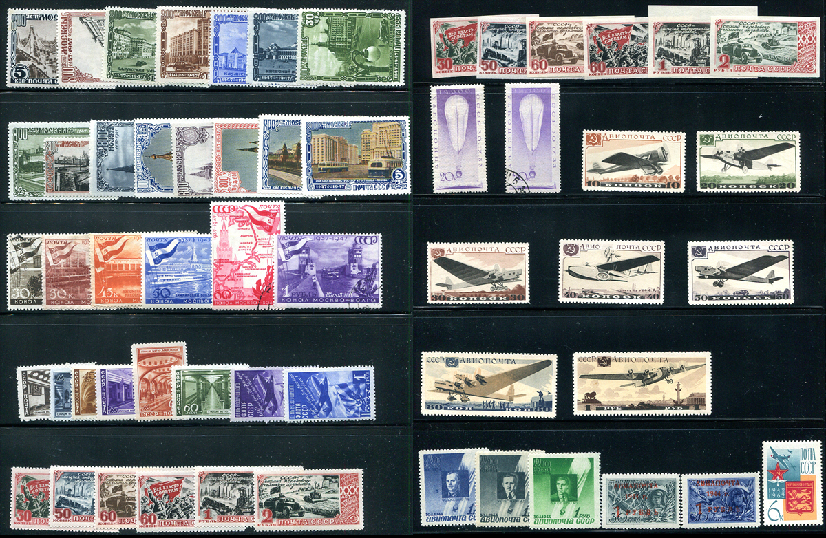 Double-sided stocksheet with 56 stamps, mainly 1947 era. One of the #C39 is used, the rest all F/VF MH / MNH. Includes #1132-1146 MH, #1153-1160 MNH, #C39 (1 mint, 1 used) and #C69-C75 MH. 2024 Scott US$355.00 =