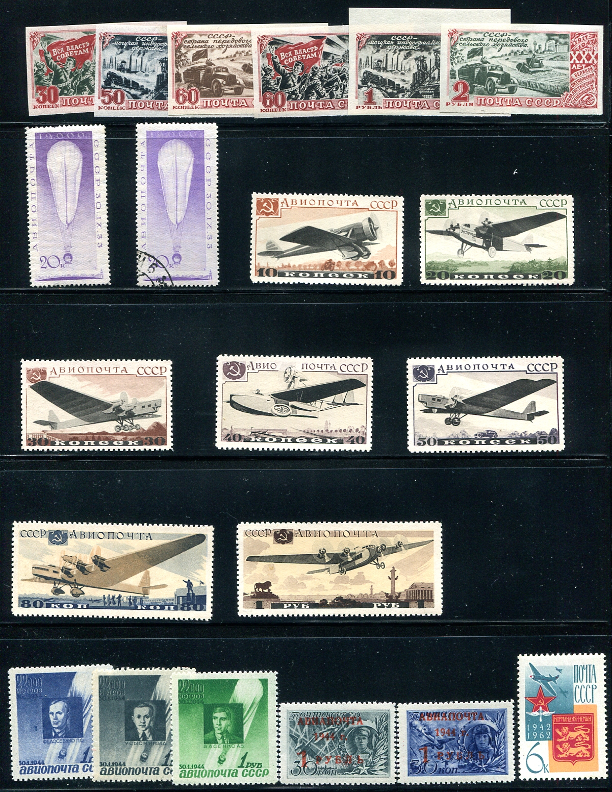 Double-sided stocksheet with 56 stamps, mainly 1947 era. One of the #C39 is used, the rest all F/VF MH / MNH. Includes #1132-1146 MH, #1153-1160 MNH, #C39 (1 mint, 1 used) and #C69-C75 MH. 2024 Scott US$355.00 =