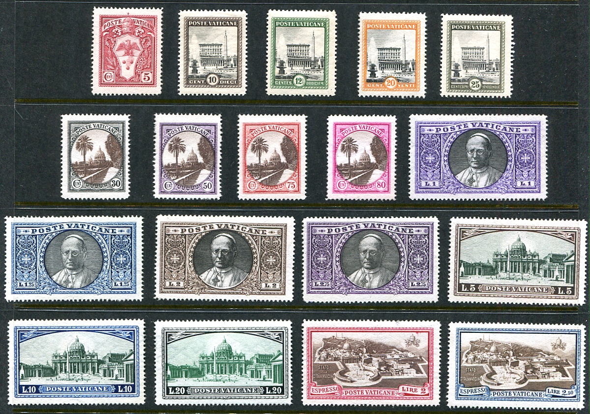 Complete mint Never Hinged 1933 issue pictorial set of 18 (including the two special delivery issues). A key Vatican set, Post Office fresh. 2025 Scott US$375.00 =