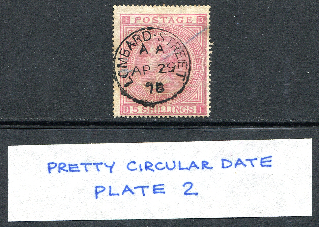 Used example of the 1867 issued 5 shilling rose QV high value, plate 2, watermark 26 (Maltese Cross). Scott footnotes add a 50% premium for a clear CDS datestamp, which this one has (dated April 29th 1878). 2025 Scott Classic US$1162.50 =