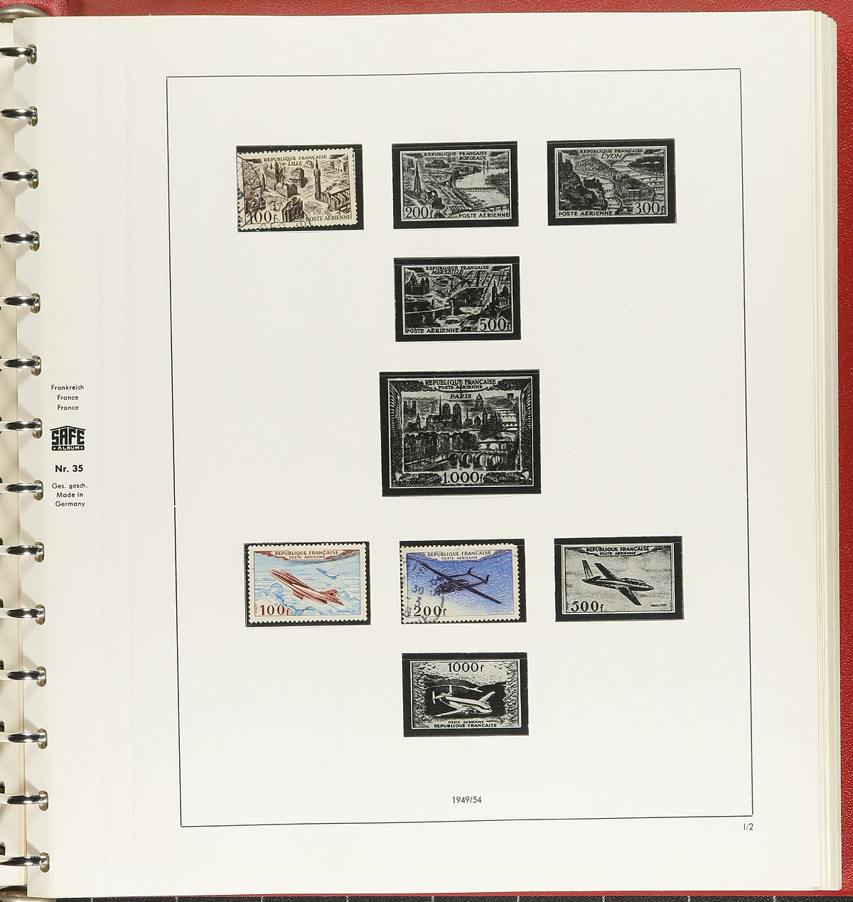 Collection of mint and used France, 1940's-1969, containing several hundreds of stamps in two SAFE hingeless albums. The collection generally ranges from Scott # 353/1262, along with selections of postage dues, airmails, and other back of the book issues. Owner's 2017 Scott catalogue value for the mint stamps only totals $410, with the hingeless albums retailing over $100.00 itself. A collection that should be expanded as France has a number of visually stunning issues. Estimate =