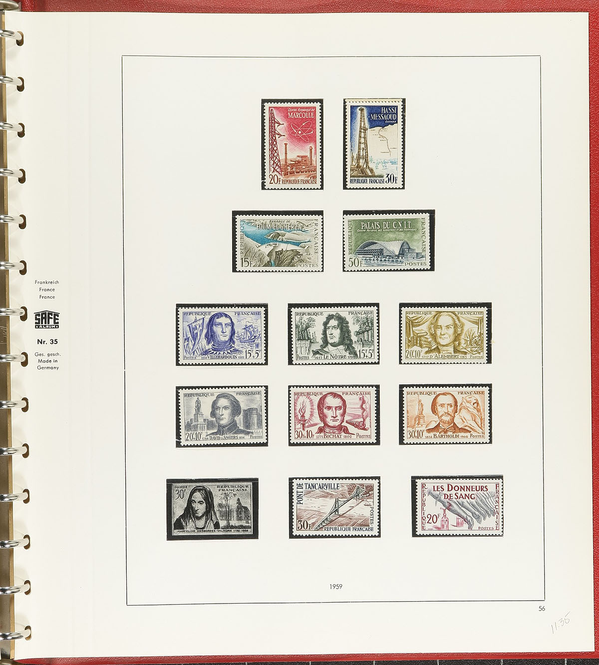 Collection of mint and used France, 1940's-1969, containing several hundreds of stamps in two SAFE hingeless albums. The collection generally ranges from Scott # 353/1262, along with selections of postage dues, airmails, and other back of the book issues. Owner's 2017 Scott catalogue value for the mint stamps only totals $410, with the hingeless albums retailing over $100.00 itself. A collection that should be expanded as France has a number of visually stunning issues. Estimate =