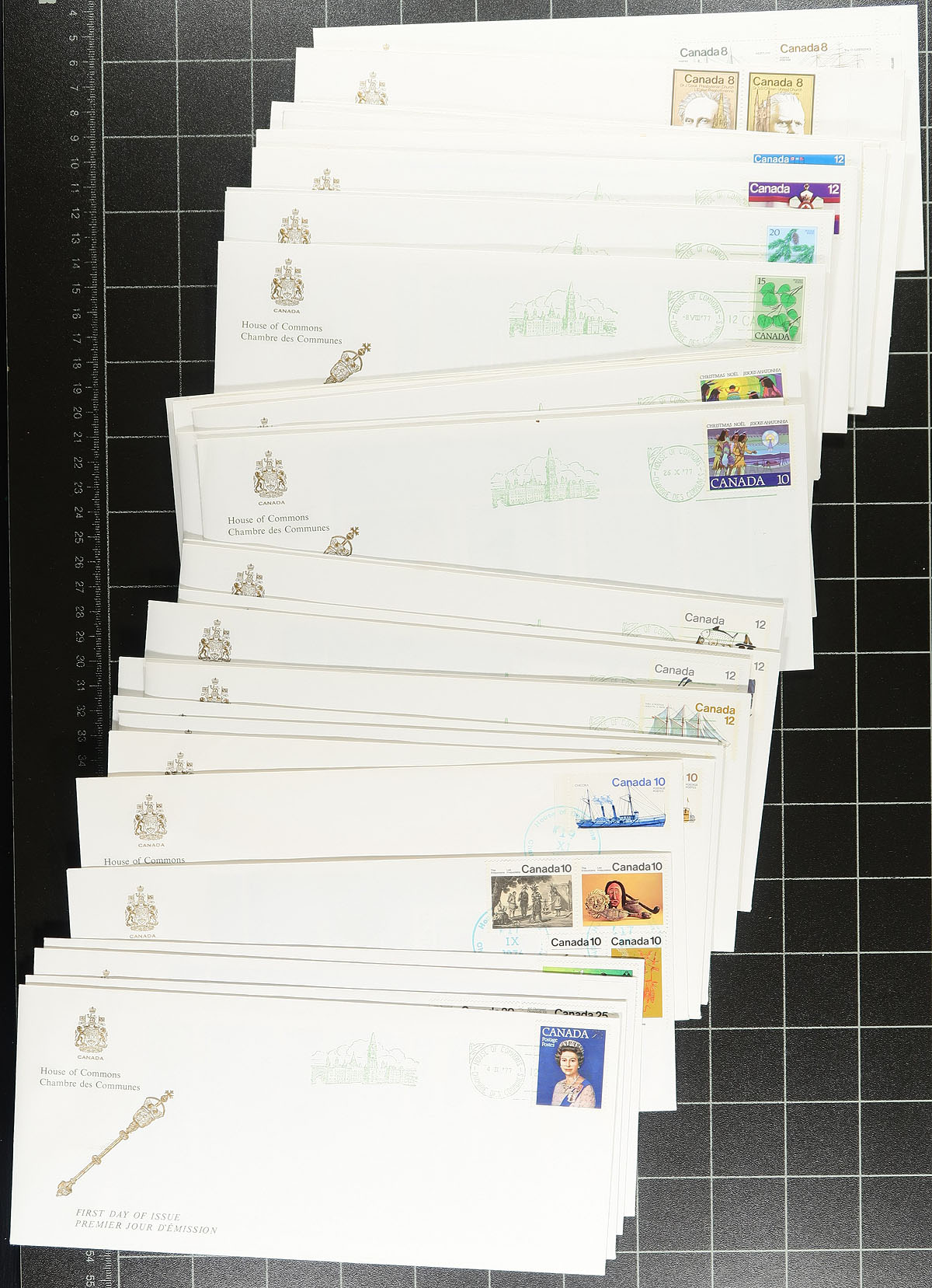 First Day Covers. Collection of roughly 150 "Senate of Canada" first day covers, 1960's-1970's, with singles, sets, and plate block franking, noting various inks and postmarks, along with a few having privately made cachets. The lot also includes 20 pilot signed "Snow Bird" covers, all with Senate of Canada postmarks. A nice lot for the first day cover specialist. Estimate =