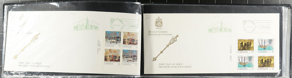 First Day Covers. Collection of roughly 150 "Senate of Canada" first day covers, 1960's-1970's, with singles, sets, and plate block franking, noting various inks and postmarks, along with a few having privately made cachets. The lot also includes 20 pilot signed "Snow Bird" covers, all with Senate of Canada postmarks. A nice lot for the first day cover specialist. Estimate =