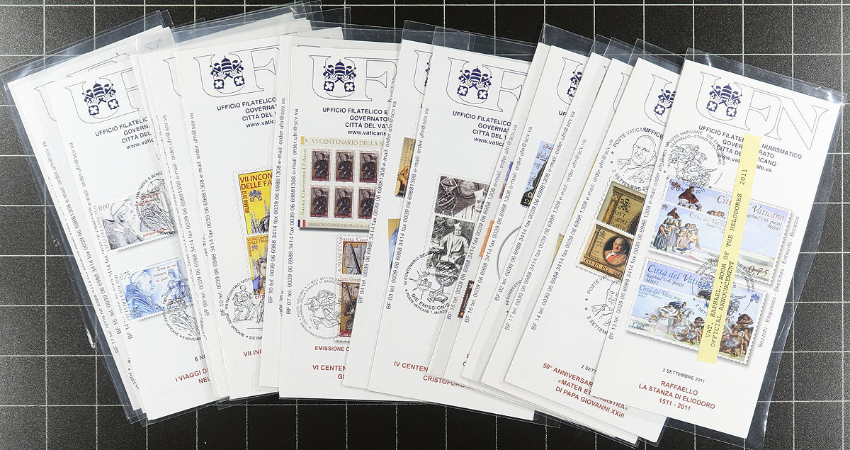 Collection of roughly 450 Vatican City covers and cards, 1940's-2010's, with the majority of material being maximum cards from the 1960's-1970's, along with roughly 75 first day covers, postcards, flyers, and more. A few covers are priced in the $5 to $10 range. A nice lot for the cover, topical, or thematic collector. Overall fine to very fine. Estimate =