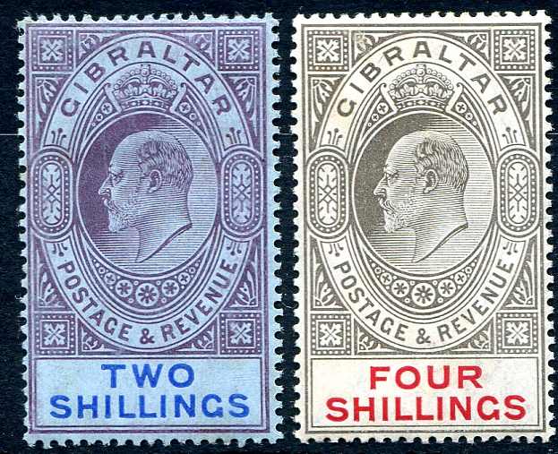 Striking mint Hinged duo of 1910 issued "large format" Edward VII issues including the 2sh violet and blue and 4sh black and red. Very clean, with none of the usually seen toning these issued are often plagued with. 2025 Scott US$237.50 =