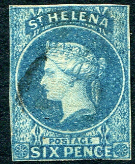 Fresh and 4-margined used example of the 1856 issue 6p blue imperf Queen Victoria (large star watermark), cut close but seemingly clear all-around. An exceptionally presentable Classic "number one" with bright and true colour. 2025 Scott US$225.00 =