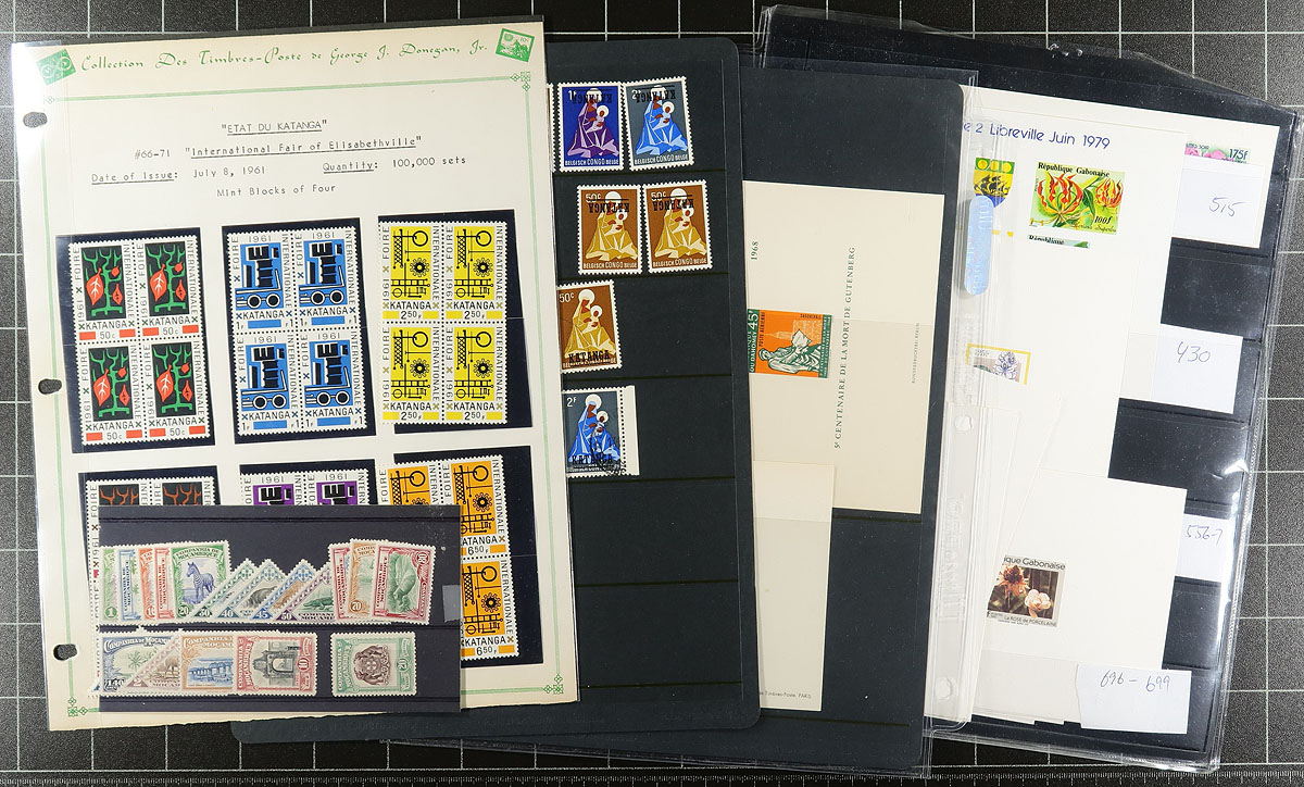 Accumulation of mint and used French Colonies, 1950's-1980's, containing roughly 900 stamps in a variety of formats. We note representation from St. Pierre et Miquelon, Chad, Central Africa, and other French Africa colonies., noting singles, sets, partial sets, imperforate stamps, souvenir sheets and sheetlets, and more. A spot check indicated a few items cataloguing $10 and up with owner's older catalogue value for the lot totals US$913.00. Online photos show an overview, overall fine to very fine. Estimate =