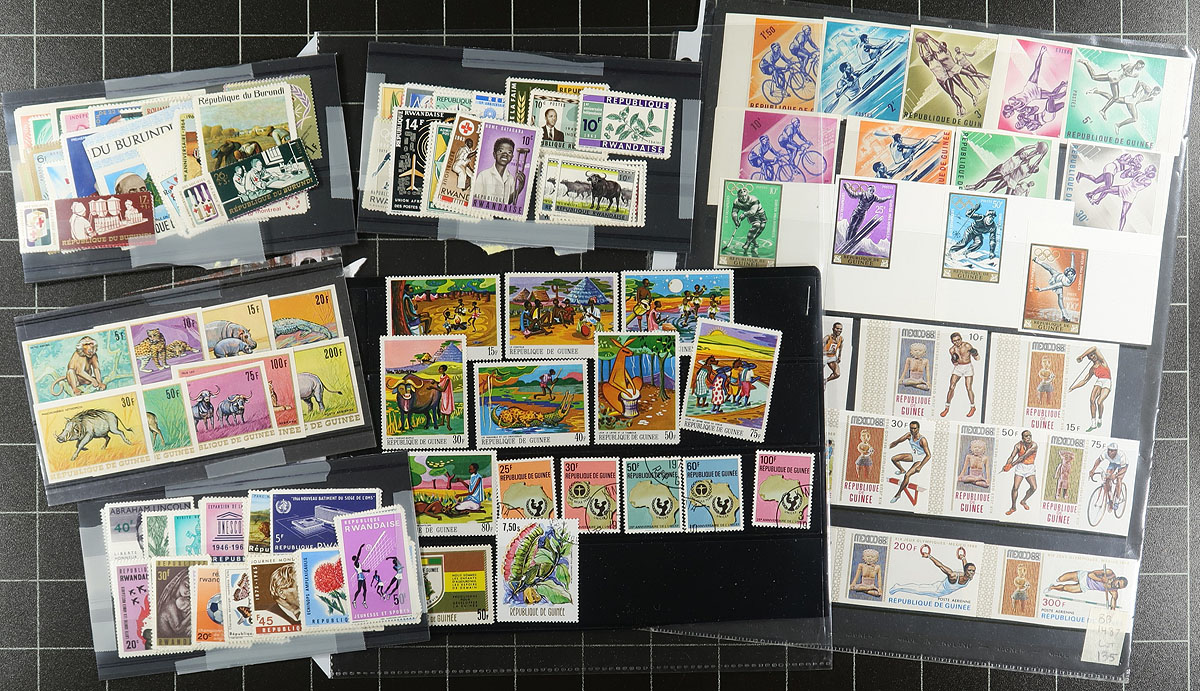 Accumulation of mint and used French Colonies, 1950's-1980's, containing roughly 900 stamps in a variety of formats. We note representation from St. Pierre et Miquelon, Chad, Central Africa, and other French Africa colonies., noting singles, sets, partial sets, imperforate stamps, souvenir sheets and sheetlets, and more. A spot check indicated a few items cataloguing $10 and up with owner's older catalogue value for the lot totals US$913.00. Online photos show an overview, overall fine to very fine. Estimate =
